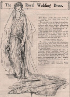 They were married at Westminster Abbey on February 28, 1922, the first marriage of the child of a monarch there since 1290. Her gown was quintessentially 1920s, dropped waist, bandeau headpiece, pearl beadwork, created by Reville LTD of Hanover Square. Lady Elizabeth Bowes-Lyons, a few years later to be the princess's sister-in-law, was one of the bridesmaids.